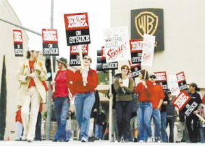 2007年11月5日,美国编剧大罢工正式开始。罢工让所有影视剧的制作受到影响,美剧受影响程度更是不在话下。美国演员工会从一开始就声援编剧罢工,众多明星还到罢工现场为编剧们呐喊助威。2008年1月4日,编剧协会和演员工会联合抵制即将召开的第65届金球奖颁奖典礼,在无人出席的前提下,这一届金球奖宣布取消了颁奖典礼。编剧罢工在这一时期达到了高潮。
