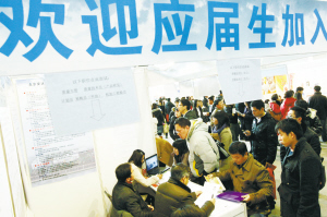 上周末,国展、农展、首体、国贸四场“新春首场招聘会”同时拉开帷幕,随着物价上涨、在京工作成本高等因素,期待高薪酬成为求职者的共识。不过,和以往的火爆场面相比,今年招聘会由于分散举行,众多求职者被“分流”;且外来求职者没有全部返京,招聘会现场显得有些冷清。国展招聘会首日5000人前往求职;而金融危机之前,10万人曾经“挤爆”国展招聘会。商报记者 暴帆/文并摄
