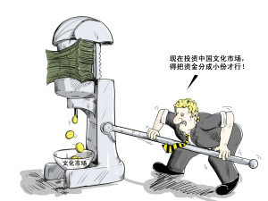 中央财经大学文化创意研究院执行院长魏鹏举认为,国际投资参与到国内的文化产业,开始转向小角度切入,小规模尝试,“主投”改成“陪玩”。陪同国内资金一起投资,面对着无疑迅速扩张中的中国文化市场,利用中方伙伴的资源优势,外方就一定有牢靠收益。