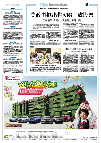 美政府拟出售AIG三成股票