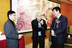 | 中国人民大学商学院教授、博士生导师黄国雄(左)与北京财贸职业学院院长王成荣共同回顾评选历程 |