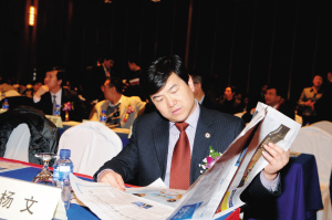 | 中国红十字基金会筹资联络部部长杨闻专心阅读北京商报 |