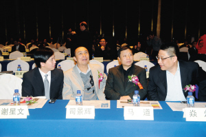 | 四位京城媒体老总一同交流“十大”六年来的评审经验。从左至右依次为北京晨报总编辑谢星文、北京娱乐信报总编辑司景辉、竞报总编辑马道、北京晚报副总编辑焱灴 |