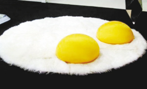 这是一款在今年的米兰家具展上亮相的“煎蛋”地毯。它被做成煎蛋的样子,蛋清是毯子、蛋黄是枕头。设计师的名字是Valentina Audrito。 图片来源:新浪微博