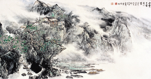 军人是以四海为家的。项鸿在几十年的军旅生涯中几次调任,历经大江南北。值得一提的是,他曾经生活在“山水甲天下”的桂林,美丽的漓江山水不仅丰富了他山水画创作的内容,也为其作品增添了几分灵性和才气。观其画作,画中清静润秀的格调不乏来自对桂林山水的体验,画作题材也颇含山水风情的特色。项鸿认真研习传统技法,注重取法先辈大师们的笔墨意趣,吸收南派北宗的艺术营养。但他的可贵之处在于师古而不泥古,始终以传统笔墨来表达现代人的思想情感。