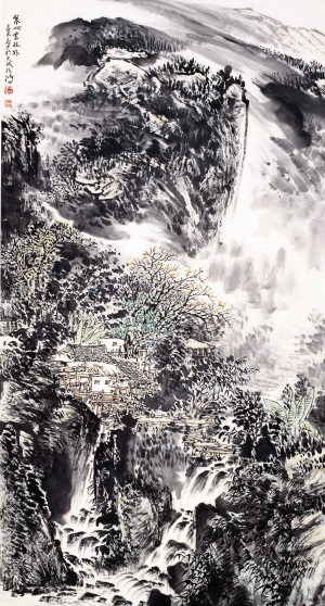 其山水画既有传统的风格又富有浓郁的现代生活气息。他以随意而有法度的用笔,皴擦点染,勾线与泼墨相结合,逐渐丰富自己的笔墨语言。他不仅面对自然山水写生,更注重以主观情感截取,使之成为可居可游的诗情之境,成为赋予对象情感、精神和生命力量的更具有艺术美的心中的第二自然。