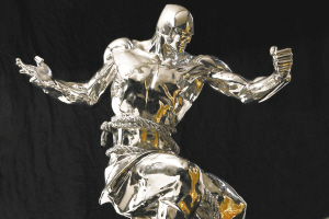 据悉,任哲的新作延续了对于古代武士的塑造,但是以不锈钢为媒材创作了一批武士的新形象。与青铜相比,不锈钢具有更加强烈的当代气息和波普意味。在以青铜为媒材的作品中,任哲是依靠夸张和变形让作品摆脱写实的局限,强化作品的意义张力,拓展作品的阐释空间。在以不锈钢为媒材的作品中,由于媒材与主题之间某种程度的相异性,作品的意义张力被进一步放大,中国与西方、传统与当代、崇高与波普、力量与优美等各种矛盾的因素所激发出来的力量,被任哲巧妙地驾驭和利用,成为拓展和丰富作品意义的动力之源。