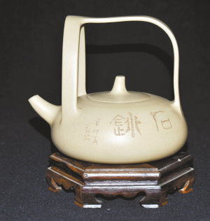 工艺师和一般做壶人的最大区别在于作品有没有思想。艺人通过自己的双手把自己的(也可以说是别人的)思想融入作品,赋予它灵魂,那这件作品就是艺术品,否则就是普通的商品。而有思想的壶还要看它的思想有没有情趣,是不是高雅。现代的作品中顾景舟的“鹧鸪提梁壶”就是代表,他自刻“癸亥春,为治老妻痼疾就医沪上,寄寓淮海中学,百无聊中抟作数壶,以寄命途坎坷也,景洲记,时年六十有九”。字里行间,充满了情感,有情趣的作品在紫砂史上最典型的就是清末的玉成窑,代表作博浪锥、汉铎、柱础、秦权,上面的刻款把把有情趣。