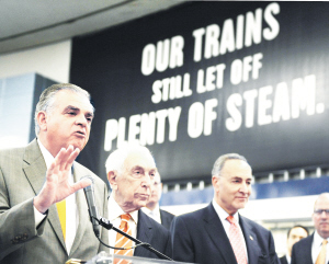 美国运输部长雷·拉胡德(左)日前发表声明,美国政府将向高速铁路项目投资20.2亿美元,用于发展下一代高速客运列车,改善最繁忙的东北走廊的铁路运输状况。拉胡德在声明中说,这项史无前例的投资将“有助于确保美国赢得未来,并建成世界上最快、最安全、效率最高的运输网”。(相关报道见第5版《京沪高铁“提速”沿线经济》) 东方IC/文并图