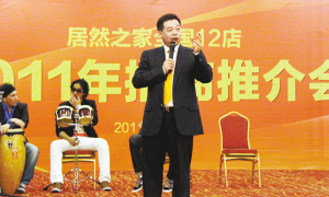 频频出台的多项房产调控政策并未让下游的家居市场陷入低迷,一个重要的迹象是,品牌家居卖场的扩张步伐仍在提速。5月6日,居然之家在北京召开盛大推介会,宣布福州店、大连店、山西大同店等12家新店同步启动招商。“我们的目标是2012年居然之家在全国的店面数量超过60家,年销售额超过300亿元。”面对台下数百名厂商代表,居然之家总裁汪林朋放出豪言。