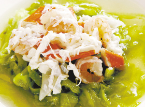 主料:鲜虾、凉瓜、蟹棒