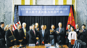 第三轮中美战略与经济对话(以下简称“对话”)北京时间昨日凌晨在华盛顿闭幕。美国财政部长盖特纳在对话结束后的新闻发布会上表示,中国未来对美国的投资有望迅速增长。“美国一直以来十分欢迎中国对美国的投资,这对美中双方都是有利的,美方关注到中国对于美国市场的兴趣,同时美方也希望能在中国市场寻找新的机会。”他说。对话期间,中国国务院副总理王岐山与盖特纳共同签署了《中美关于促进经济强劲、可持续、平衡增长和经济合作的全面框架》。