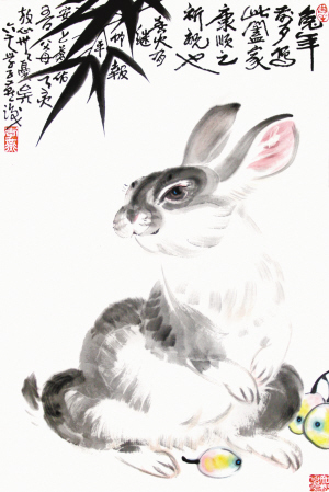 这张今年春节创作的小兔子是不是更显出李燕先生希望的祥和愿望呢?