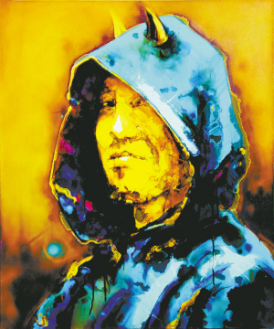 严超的画作,可以从中感受到他的内心正不断冲击着人们固有的形式姿态,藏在内心中长着角的魔和现实中温良谦和的姿态不断碰撞、交叠,最终融汇在一起。角在他的画作中频繁出现,是一种潜移默化的表述形式,严超表示:“每个人的内心都有着角的存在,即使是与世无争的隐士,‘隐’的过程与状态也是与相对环境的一种本我‘抗争’。”