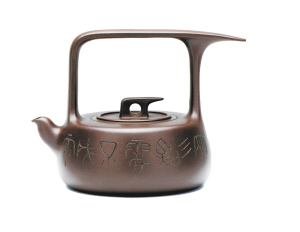 不过有意思的是,虽然各拍卖公司对于紫砂有着极高的关注热情,但在市场扩张的态度上却有着完全不同的表现。作为早在2008年就涉足紫砂专拍的中国嘉德,在此次春拍中持大举扩张的态势,无论是专场次数、拍品数量,还是涵盖的历史阶段,都可称之为“规模空前”。除了专门为老壶和近现代紫砂设立的两个专场以外,还专为当代实力派紫砂推出了专场,可谓费尽心思。而在嘉德的此次春拍中,也不乏顾景舟等当代名家精品。如顾景舟与韩美林合作的“提梁盘壶”,上书“两三点露不成雨,七八颗星犹在天”,文人气息颇浓。据中国嘉德国际拍卖有限公司瓷器公艺品部高级业务经理陈林林介绍,这是该公司“有史以来规模最大、精品最多、阵容最大、年代最广的一次紫砂拍卖”,共计300余件拍品,总估价4000万元左右。