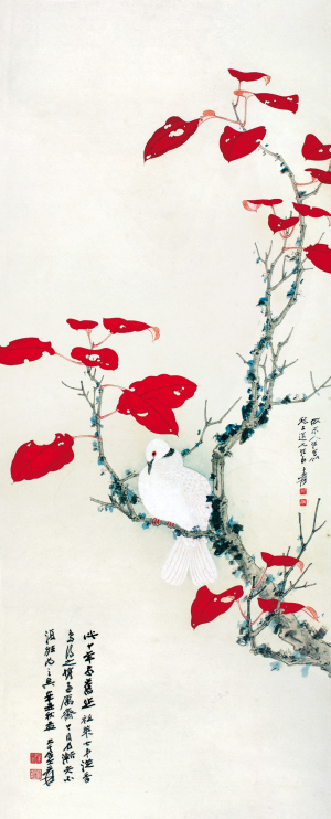 “冉氏书庐”藏画专场共计拍品20件,俱为20世纪重要的书画家,如吴昌硕、弘一、张大千、溥心畬、高剑父、杨善深等。其中,张大千7件,溥心畬8件,且大多为精品之作,“南张北溥”,大有可观。
