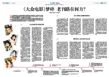 记者日前在和平里地区某零售报摊买到了最新一期的《大众电影》。在翻阅中了解到,目前该杂志是半月刊,每期64页左右,分为“影谈”、“封面故事”、“影片”、“电视剧场”、“影人”、“影史”、“资讯”7个栏目,定价6.9元,定价在目前此类杂志中属中等偏低。而内容编排过于保守难以留住青年受众,且文章不再像以前那样禁得起细细阅读、硬伤也不少。“很久不看《大众电影》,最近听说它运行上出现一些问题,就到报摊买了一本看。报摊摊主说现在这份杂志他们只进一到两本,因为怕不好卖。翻开杂志,感觉内容不够活泼、服务性的东西有一些但太不显眼,还有大量约稿质量也一般般,印刷也不精美,很难和现在整本铜版纸的厚版杂志媲美。”对此,一位读者对记者表示。