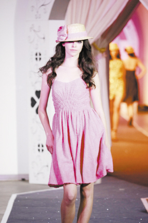 甄选国际上大热的数码印染雪纺,挑选缀绣以精致亮片的深加工面料作为裙装的原料,大量采用了手工拉褶、抓褶工艺,采用了多种材料复合成的柔软蕾丝、海军条纹、经典圆点、动物图案、花草蔬果图案,体现女性清纯、俏丽、欢快、率真的风格。