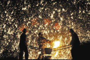 除了发展剪纸艺术外,蔚县还抢救性保护“拜灯山”、“打树花”等非遗文化,使其“活态”化。