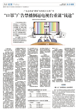 电视剧是电视台重要的生命线,广告是维护电视台正常运营的重要保障,一旦“口罩”广告禁播令出台,势必会对电视台经营造成影响。但有分析认为,如果让观众被迫接受广告而大倒胃口,电视剧的收视率则无法得到保障,而收视率又是商家所最看重的。
