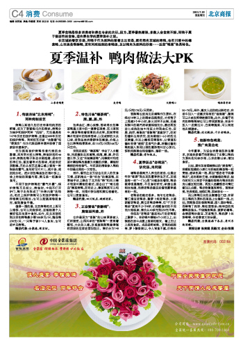 今年夏季,为迎合消费者的养生需求,京城多家餐厅创新推出了主要以鸭肉为原料的风味炒菜,以求改善口味,增加食欲。