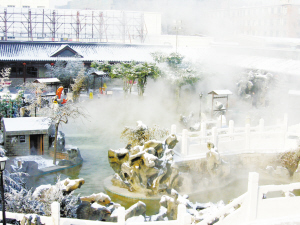 华清温泉2001年动工,2002年底建成。“当时考察了日本的温泉之后建成,在当时来说是北京第一家园林式温泉,可以露天泡。”假山、亭子、树木、栏杆,中间是温泉,虽然不敢说像杨贵妃那样享受,但也给人一种飘飘欲仙的感觉。