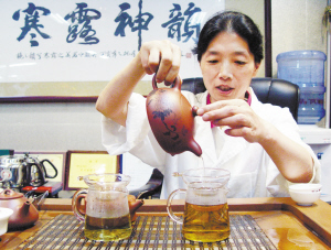 从养生保健的角度来讲,因为铁观音的茶汤中含有茶多酚类、糖类、氨基酸等成分,所以能够滋润口腔,起到生津止渴的作用。同时,由于咖啡碱作用,还能促使大量的能量从人体的皮肤毛孔里散出,使人感到凉爽解暑。这也是为什么铁观音适合在这个季节饮用的原因。此外,沈红告诉记者,铁观音还有抗衰老、抗癌症、抗动脉硬化、防治糖尿病、减肥健美、防治龋齿、清热降火、敌烟醒酒等功效。当然,这些需要饮用者保持长期的饮茶习惯。