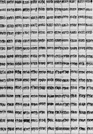 方列丰的数码绘画作品,通过数码技术将图像的每一个像素还原为颜色代码,按照图片像素的顺序,将颜色代码抄写到画好的、与原图片像素排序相同的方格矩阵的画纸上,构成一幅数码绘画。