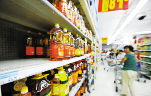 北京市场的零售终端,食用油价格已出现松动。在沃尔玛和世纪华联,鲁花5S压榨一级花生油5L装的售价已从之前的105元上涨至115.9元,差价为10.9元。鲁花5S压榨一级花生油5.436L装的售价从115.9元涨至127.9元,差价为12元。沃尔玛的销售员表示,自传出食用油涨价的消息后,鲁花花生油的销量就一直不错,很多消费者都在价格未涨时多买几瓶,目前5.436L装的已断货。