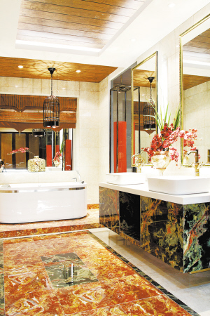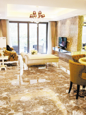 这还不是最重要的。与天然石材相比,“禅武-精工玉石”优点众多:以玉砂为原材料,色泽晶莹剔透;微晶工艺,实现“镜玉”效果;表面覆盖3毫米原晶体,如一层永恒的蜡,耐磨美观;经过1250摄氏度以上高温锤炼,吸水率极低,表面平整度极高,好养护,易清洁;进口原料,环保无辐射,绿色健康;产品花色丰富,易与各种装饰风格搭配;滚筒印花,花色自然,片片不同。