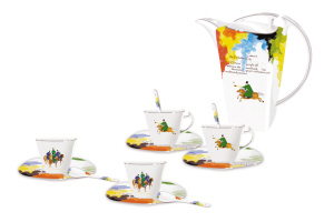 田路一对中国文化的推陈出新情有独钟:“我们都知道高尔夫球是高端运动,但是这个球类的游戏规则在明朝就已经有了。普通老百姓不知道皇帝在故宫里是怎么生活的,我们要让老百姓知道;在故宫的藏品中挖掘皇帝的故事。”找来找去,在2007年田路一找到了《明宣宗的宫中行乐图》,从中可以了解到,皇帝除了处理朝政,还在皇宫里射箭、踢球、玩马术、打高尔夫,只不过当时玩的名称与现在的不一样。田路一开发设计的《紫禁城里的运动会》系列产品有茶具、瓷盘表、烟灰缸等等,这些商品中绘的画面来自故宫藏的《明宣宗故宫行乐图》、《冰嬉图》、《马术图》等等。其中茶具一套3000多元,很精美。