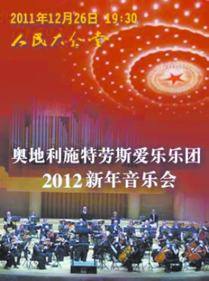 国家大剧院音乐厅上演的新年音乐会,由指挥大师洛林·马泽尔执棒国家大剧院管弦乐团,一共两场,分别在12月31日20时和2012年1月1日19时30分开演。除了新年音乐会,国家大剧院还将在12月31日23时开演一场具有品牌性质的“迎钟声新年音乐会”,由张艺执棒国家芭蕾舞团交响乐团演出,曲目均为短小精悍的中外名曲和中外芭蕾舞剧组曲。