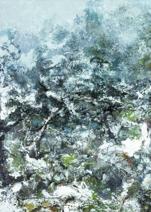 但是我至今也无法解释为什么我不画抽象了。当时画的时候我也很兴奋,从抽象角度来看画面的色彩、结构、肌理之间呈现的状态使我很激动。总在想是不是可以在这里面发展。但是走到一定程度我觉得作品很空洞,虽然画得很多,但我认为无法走到我心灵的深处。继续往下走,我的心中不愿意舍弃那个形,或者说这个形不是绘画上的形,当时还是不愿舍弃一种情。我一直有个情结,就是我喜欢自然,对自然中我体会到的情怀念念不忘,似乎有话没有说清,一下转移到抽象上,会有一点隐隐的留恋,觉得好像有话还没说就走了。