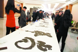 12月11日,在南四环外的城外诚会所,近30多名书画名家齐聚一堂,或写书法或画水墨画,以城外诚提倡的“诚信文化”为主题齐齐挥毫泼墨,近百幅书画作品不多时便呈献在人们面前。