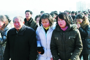 据朝中社昨日报道,朝鲜最高领导人金正日17日逝世,朝鲜方面要求朝鲜全党全军“忠于”金正恩的领导。日美韩等国对朝鲜半岛局势高度关注,韩国军队进入紧急戒备状态;受此影响,韩国股市昨日暴跌。图为朝鲜民众哀悼金正日逝世。 (详细报道见第8版)新华社/文并图