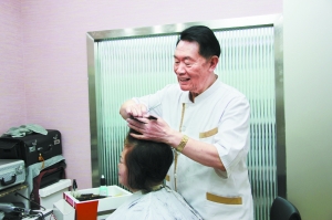 笑容亲切、满面红光,发丝乌黑整齐,配上一米八几的高挑身材,如果不是事先知道,记者决计不会猜到,这位手法娴熟、动作敏捷,看起来顶多五六十岁的理发师,就是今年已经75岁高龄的中华传统技艺技能大师吴师傅。