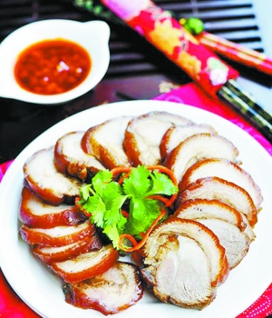 除了以上的品牌熟食制品外,还可以带着家人到餐厅品尝名菜“扒猪脸”。这可是一道功夫菜,需要经过选料、清洗、喷烤、洗泡、酱制等十几道准备工序,之后再放入锅中烹制10小时以上,一道“扒猪脸”才能端上餐桌,入口香而不腻,口感甜鲜,其不仅美容还有健脑的效果。商报记者 张笑嫣