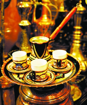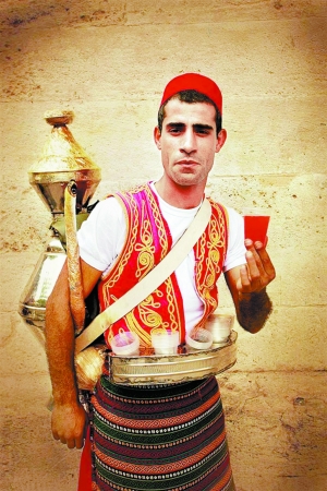 土耳其的玻璃小茶杯的造型很独特,茶杯高约12厘米,底部浑圆粗大,距杯沿2厘米的杯外壁处有弧形凹陷,正好可供使用者端住茶杯。圆杯子中间略弯呈腰状,红茶在这样的玻璃小腰杯里显得格外可爱,像一盅红得透亮的葡萄美酒,也像一柱玲珑剔透的红玛瑙,还像一朵含苞待放的郁金香,左右赏看,极为养眼。如此精美的腰杯红茶,不但随卖茶郎走街串巷,让八方百姓尽情享用。那些政府机关以及高级宾馆和餐馆也是同杯同茶,所有人都乐此不疲。置身于此你仿佛觉得这杯不分贫富贵贱的红茶是土耳其社会公平与和谐的体现,一杯玛瑙香茶便喝出了一个“最温和的伊斯兰国家”。