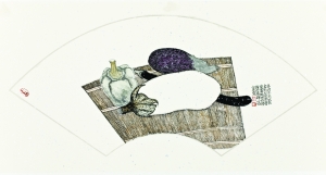 随手翻着他才完成的十数帧蔬果扇面与册页,着实给了我一个不小的惊喜。他所绘萝卜、白菜、葱蒜、莲藕等物,朴素大方,清新雅致,无丝毫世俗之气,且一概素墨,不着一点颜色。作品从内中透出一股纯粹的平和之气。画面的格局和各种关系的梳理也显得十分得体,又每每于物象的细节处,不惜笔墨、不厌其繁、一丝不苟,大大增强了作品的可读性,图式亦有了新的突破。知其近期心有所悟,收获颇丰,我心中甚感欣慰。