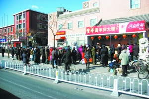 焦香诱人的烤馒头、包裹着缕缕银丝的银丝卷、香甜绵软的豆沙包、嚼劲十足的杠头……作为京城百姓必购的年货之一,“印象丰泽园礼盒”、“拜大年礼盒”、“丰庆礼盒”、“六味礼盒”等丰泽园“八大件”系列礼盒,历来是节日市场上的抢手货。每年从春节前半个月开始,丰泽园饭店门前的年货大棚就天天排起抢购长队。