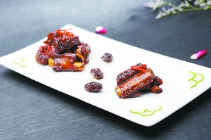 制作:猪小排切3cm段,洗净后加葱、姜、料酒等煮约20分钟后捞出。锅入油,待七成热后倒入排骨炸至表面略干;话梅用开水泡上备用,冰糖炒糖色备用;锅肉热油加番茄酱炒出红油加白糖、米醋糖色适量,水适量。调好味加入炸过的排骨。小火烧约30分钟后加入泡过话梅的水和话梅继续烧约10分钟至排骨软烂收汁即可。