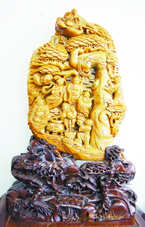 在近几年举办的广西奇石交易会上,金沙玉器一枝独秀,不似翡翠胜似翡翠,成为国内外客户竞相收购的新宠。来自印度、马来西亚、斯里兰卡和我国港澳台地区的客户,对金沙美玉赞不绝口,大量收购,使金沙玉的价格扶摇直上。在今年的交易会上,一尊金光闪烁造型庄严威猛、高约50cm的关羽雕像,被一台湾商户以280万元收购。(下转F2版)