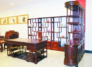 上万平方米的美联红木旗舰店就像一个红木家具博物馆。而时刻与红木家具融为一体的,是美联红木总设计师胡冠军20年来的设计书画作品及家具创作原稿,使得店内处处涌动着文化气息。在展厅里,来宾可以随意与这些精品红木家具亲密接触,有的三两好友坐在“雕狮子头贵妃床”上品着茶,有的端起红酒杯围着一幅书画艺术作品交流个不停。据悉,这场结合红木家具与书画艺术的展览将持续到12月22日,京城百姓可以在此期间零距离感受红木文化的各种魅力。