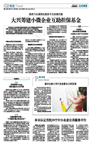 大兴筹建小微企业互助担保基金