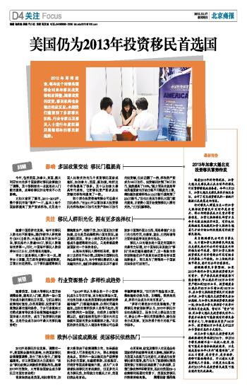 美国仍为2013年投资移民首选国