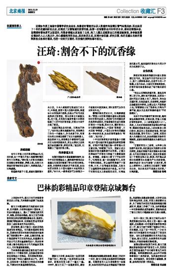 当意识到这点的时候,汪琦坐不住了。“当时我从事的是媒体行业,我觉得自己作为一个媒体人,作为炎黄子孙,有责任也有义务将这根断了的文化线衔接上,然后传承下去。我觉得这个事情我可以做并且也是我很喜欢的,所以从那次之后我就开始收藏沉香、研究沉香。”就这样,汪琦踏上了他的沉香之路。