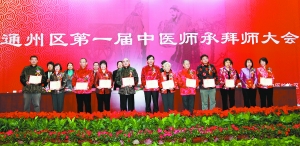 据了解, 此次通州区第一届中医师承教育拜师大会是中医药师承活动首次走进通州,也是北京市落实医改工作要求和“强基层”工作目标的一项重要内容。北京中医药大学东直门医院东区院长王耀献介绍,这次师承拜师活动中的导师,有我国著名的心病科专家、享受国务院特殊津贴的名老中医郭维琴教授在内的13名中医名家,传承的徒弟要求具有相当的专业理论知识和一定实践经验的中青年中医业务骨干,具体方式要求由单位推荐、参加理论考核等方式后择优录取,此次活动最终选出通州区9家医疗单位的23名中青年医师获得传承资格。