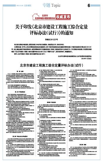 关于印发《北京市建设工程施工综合定量评标办法(试行)》的通知