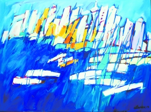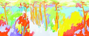 站在视觉文化的立场上,无论是现实主义的风景画还是表现主义的风景画,都是人的本质力量对象化的产物,是人将自己的主观意志投射在自然物象之后有关人自身本质的显现。因此,风景画对自然美的表现从来不是单纯地再现了自然本身的特征,而是人类文化以各种方式显现自身的结果。从这个层面上讲,晨晓的这种色彩构成从文化上可以追溯一个久远的传统,但他的目的并不是简单地展示一种文化符号,而是要在西方既定的表现主义绘画的色彩模式中走出一条自己的道路,这也就有了他的“唯美表现主义”。同时,他的画面不但具有“唯美”的效果和“表现主义”的语言,更是表现出了东西方不同文化之间的融合。