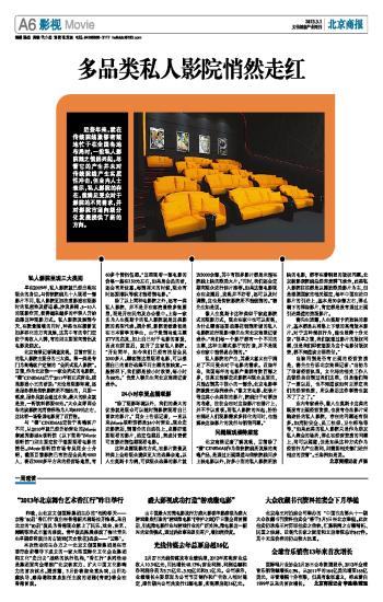 早在2009年,私人影院就已经出现在观众的身边。与传统院线几十人观看一部影片不同,私人影院更加注重影迷在观影时的私密性及舒适感。沙发座椅、5-10人的观影空间,使得越来越多的年轻人开始选择这种观影方式。私人影院发展到今天,在数量猛增的同时,种类也在朝着更加多样化的方向发展,这其中有的专门定位于高收入人群,有的则主要面向情侣及电影发烧友。